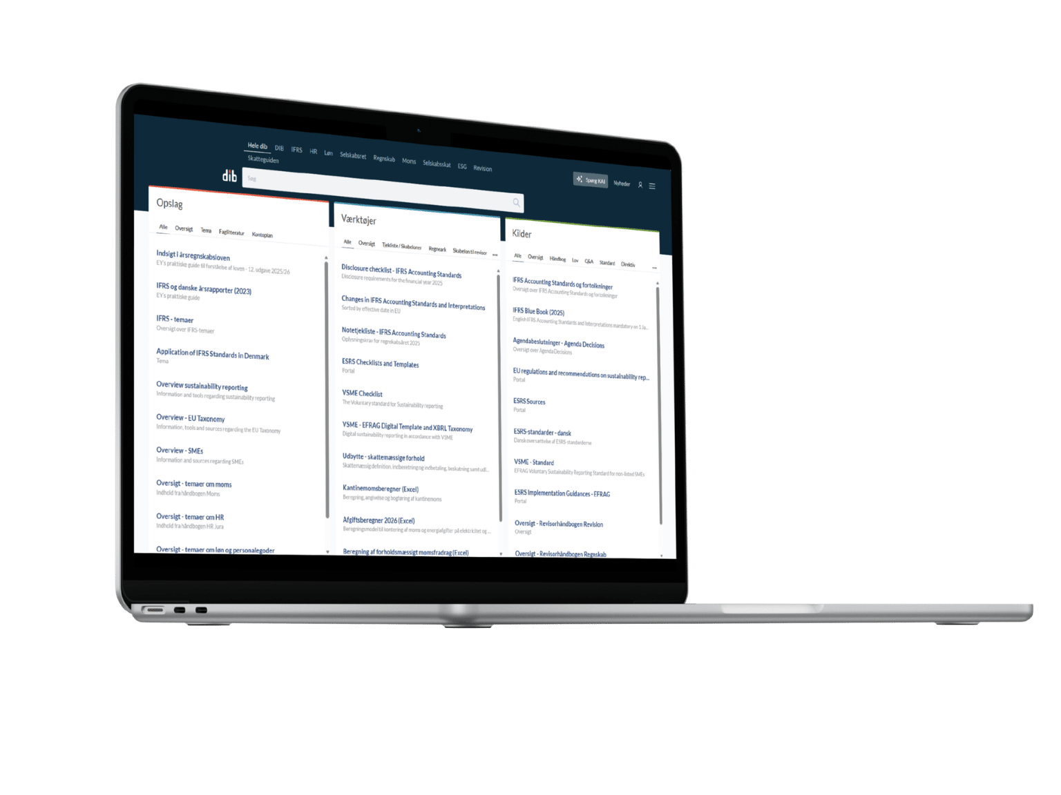 I over 30 år har DIB arbejdet for at gøre hverdagen lettere for dig, der arbejder med regnskab, revision og selskabsret. Vidensværktøjet – dib – er skræddersyet til at imødekomme dine behov, uanset om du har brug for at slå op i love og regler eller udføre praktiske opgaver med vores opdaterede og kvalitetssikrede skabeloner og tjeklister. Med dib bliver komplekse regelsæt lettere at navigere i, samtidig med at værktøjet tilbyder den nødvendige faglige bredde og dybde. Dette sikrer, at du kan fokusere på det, der virkelig betyder noget – at levere kvalitet i dit arbejde så effektivt som muligt.